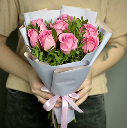 Букет "Нежный шепот" из 9 нежно-розовых кенийских роз – это воплощение деликатности и утонченности. Эти розы, известные своей стойкостью и изящными бутонами, создают легкую и воздушную композицию, которая идеально подойдет для выражения симпатии или благодарности. Букет оформлен в минималистичном стиле, подчеркивающем естественную красоту каждого цветка.